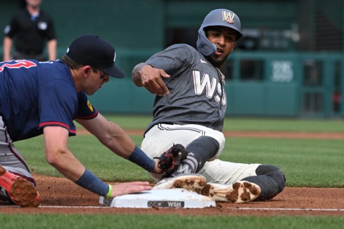 In the Washington first, leadoff batter CJ Abrams was hit by a pitch and Thomas singled. Jesse Winker sacrificed the runners to second and third and Rosario doubled to center field to give the Nationals a 2-0 lead.