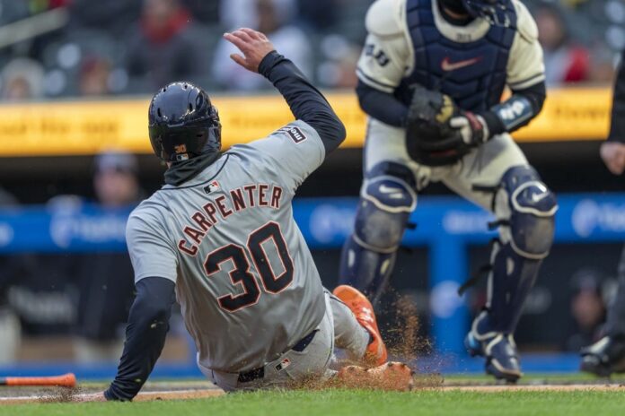 Kerry Carpenter finished 4-for-5 with a double and two RBIs for Detroit, which opened a six-game road trip. Spencer Torkelson added three hits, including an RBI single.