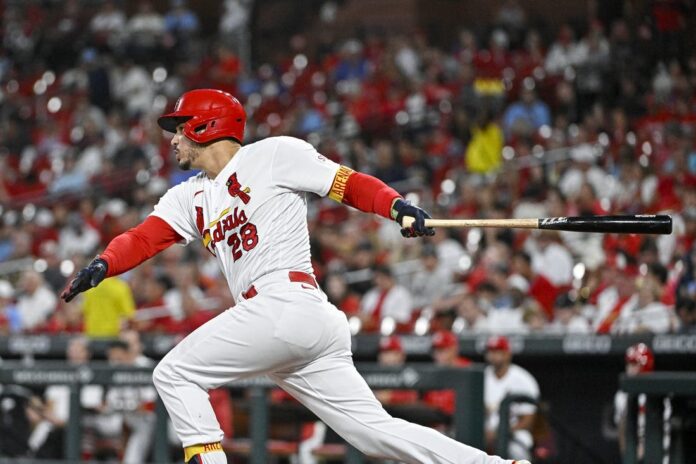 The Cardinals took a 4-0 first-inning lead. Lars Nootbaar hit a single, Paul Goldschmidt followed with an RBI double and Arenado ripped his two-run homer.