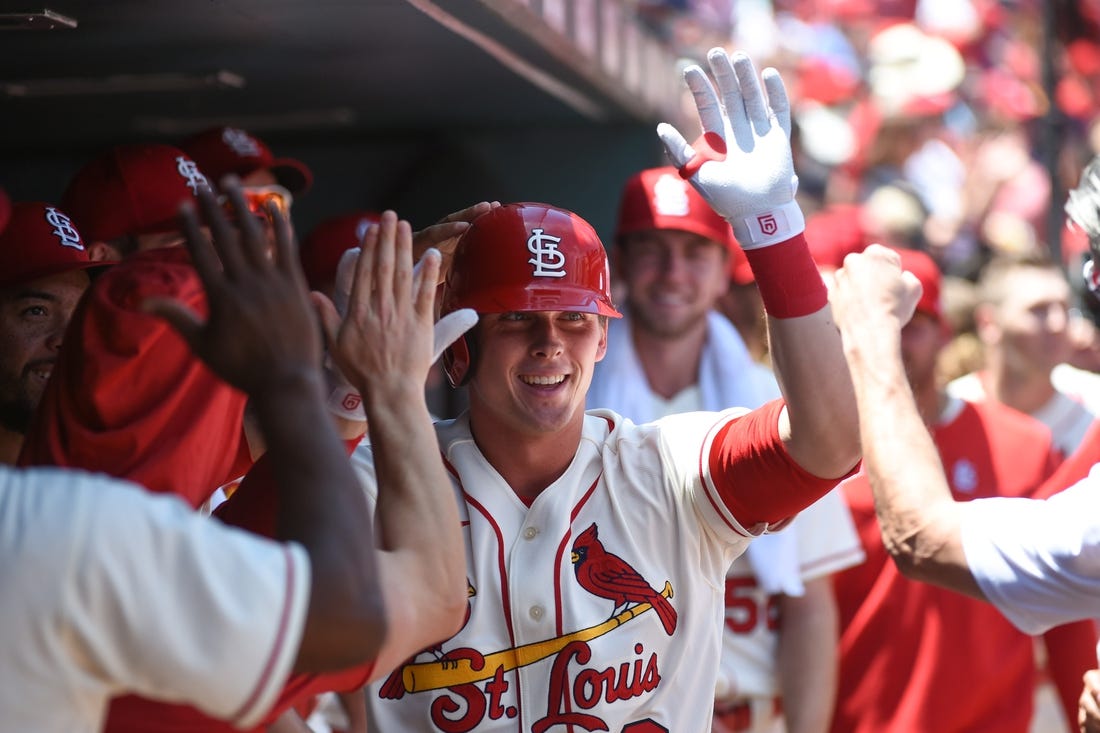 The Cardinals expanded their lead to 8-0 with three unearned runs in the bottom of the inning. Corey Dickerson walked, Edman reached on a two-out error, Gorman hit a two-run double and Goldschmidt followed with a RBI single.