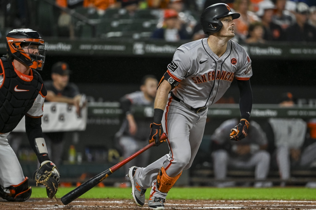 Giants right fielder Mike Yastrzemski, who spent six seasons in the Baltimore farm system, had a game-opening home run, an RBI single and a walk Tuesday night.