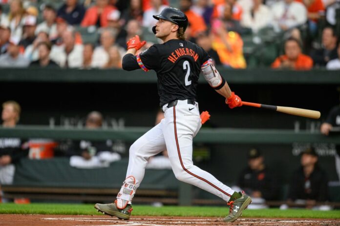Colton Cowser added a two-run double in the opening inning, and Henderson later smacked a run-scoring triple during the Orioles’ four-run seventh inning.