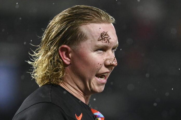 “You never try to hit somebody in the head … up high like that,” Holmes said after Friday’s game. “Definitely hope that (Kjerstad) is all good (Saturday), but it’s one of those things where the conditions weren’t great, and I was trying to throw a front door sinker there and it just cut.”