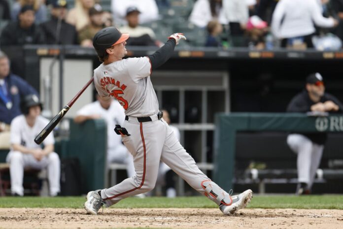 Orioles catcher/designated hitter Adley Rutschman drove in seven runs in the Chicago series, with two coming on his 10th home run of the season in the last game of the series.