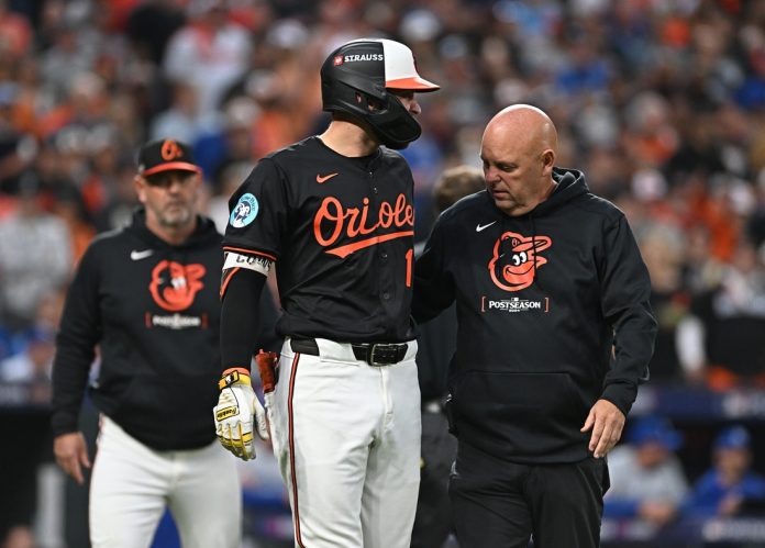 Cowser was hit on the hand as he struck out swinging on 97 mph fastball from Royals left-hander Angel Zerpa with the bases loaded for the second out of the fifth inning. The Orioles failed to score in the inning and the Royals scored the go-ahead run the following half inning en route to a 2-1 win and two-game sweep.