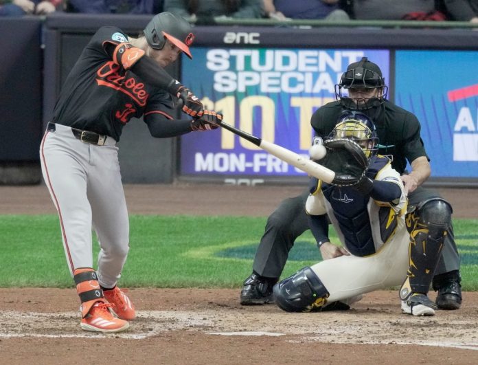 Reliever Trevor Megill entered for Milwaukee in the 10th with Gunnar Henderson on second. Megill retired Ryan Mountcastle, but O’Hearn’s single to left gave the Orioles a 4-3 lead.