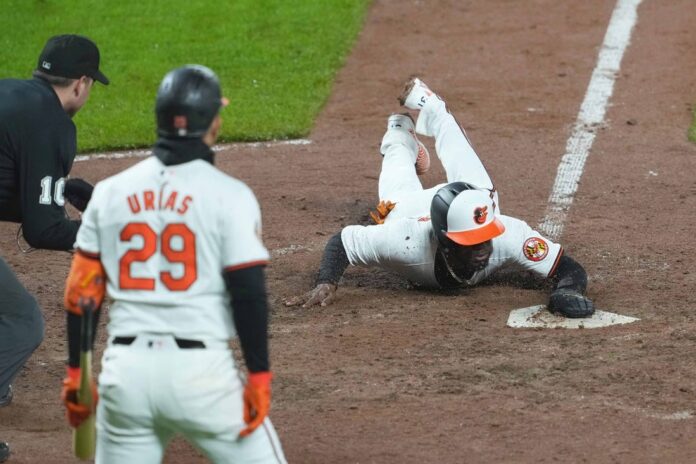 Ryan Mountcastle opened the ninth by working a walk against Will Smith (0-2) before Anthony Santander singled. Cedric Mullins pinch-ran for Santander, and both runners moved up a base on the first sacrifice bunt of Jordan Westburg’s professional career. Austin Hays was then intentionally walked to load the bases.
