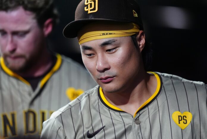 San Diego Padres shortstop Ha-Seong Kim left Sunday’s game against the Colorado Rockies in Denver with an injured right shoulder.