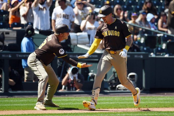 Machado gave the Padres the lead with a two-run homer in the first inning, his 23rd of the season. Merrill hit a solo shot in the second to make it 3-0. It was his 10th of the season.