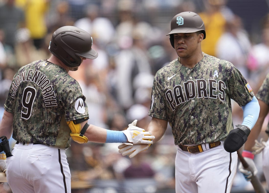 The Padres added two runs on back-to-back doubles by Jake Cronenworth and Rougned Odor in the fourth. Grisham walked to open the fifth, stole second, moved to third on a groundout and scored on Machado’s single for their final run.