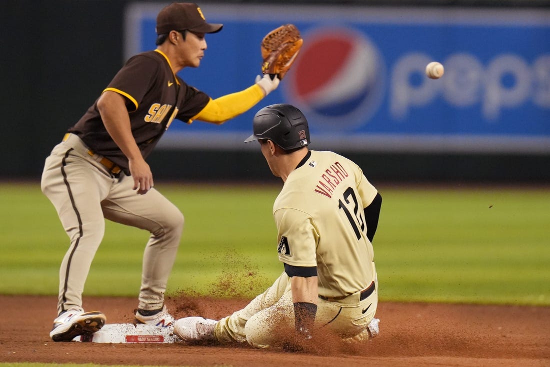 Gallen allowed two runs on four hits and three walks, with four strikeouts in 5 1/3 innings. The Padres drove up Gallen’s pitch count early as they loaded the bases in the first on a single and two walks without scoring. Gallen threw 29 pitches in the first and 20 in the second.