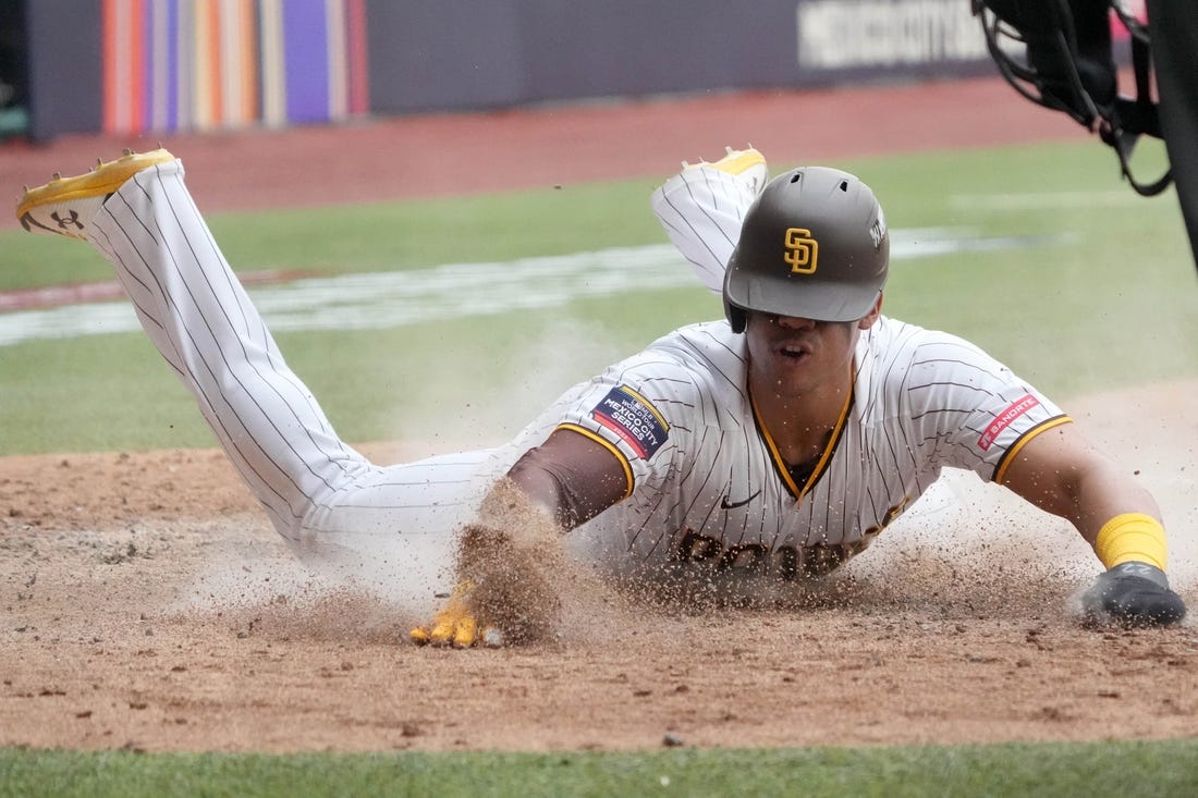 Doval then struck out Nelson Cruz before Carpenter lofted a high fly to short center. Yastrzemski charged from his deep position and made a head-first dive. But the ball bounced off his glove as he landed hard on the artificial turf of Estadio Alfredo Harp Helu. As the ball rolled toward left field, Bogaerts and Cronenworth scored. Yastrzemski left the game with a hamstring injury.