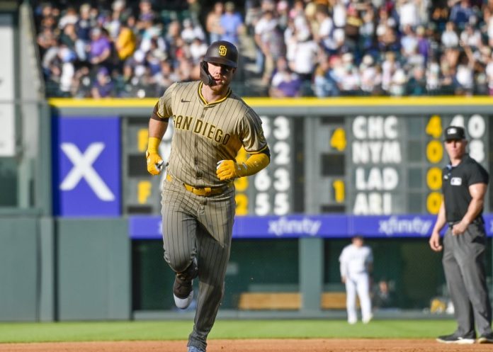 The Padres set a season high for runs and hits for the second straight night after Friday’s 13-9 win in Denver on 16 hits. Every position player except for reserve left fielder Brandon Lockridge (0 for 1 with a walk) had at least a hit on Saturday, and eight had more than one. San Diego’s 24 hits tied a franchise record.