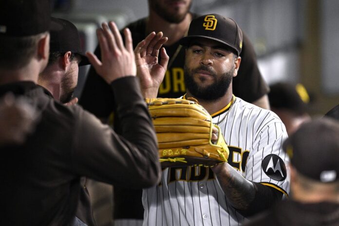 Manny Machado singled with one out in the inning and moved to third on Bogaerts’ double. Luis Campusano then hit a sharp grounder to second baseman Bryson Stott, who decided to throw home in an attempt to get Machado. But his throw was wild, allowing Bogaerts to also score.