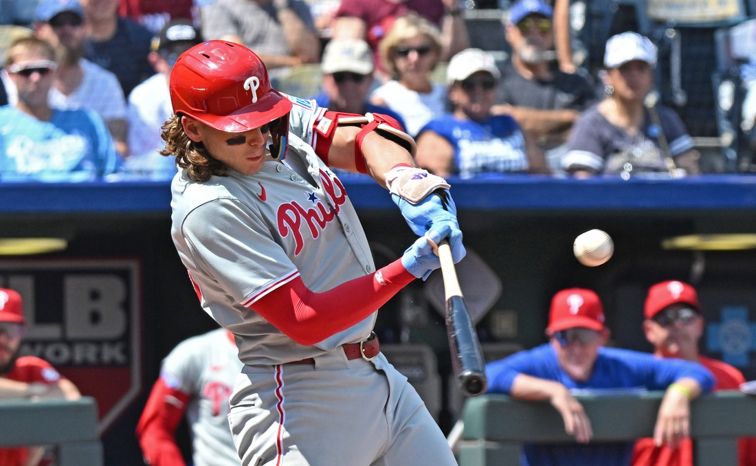 Schwarber grounded the first pitch from Kris Bubic into right field for a single, scoring Johan Rojas, and Stubbs followed Rojas home when Dairon Blanco booted the ball, stretching the lead to 6-2.
