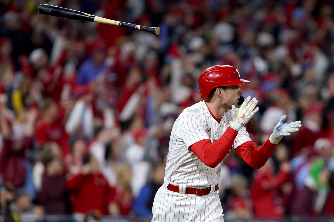 In the bottom of the inning, Hoskins’ second two-run blast, this time off Manaea, tied the game at 6, and Harper added an RBI double for a one-run advantage. Castellanos followed with an RBI single as the ball ricocheted off the second base bag for an 8-6 lead.