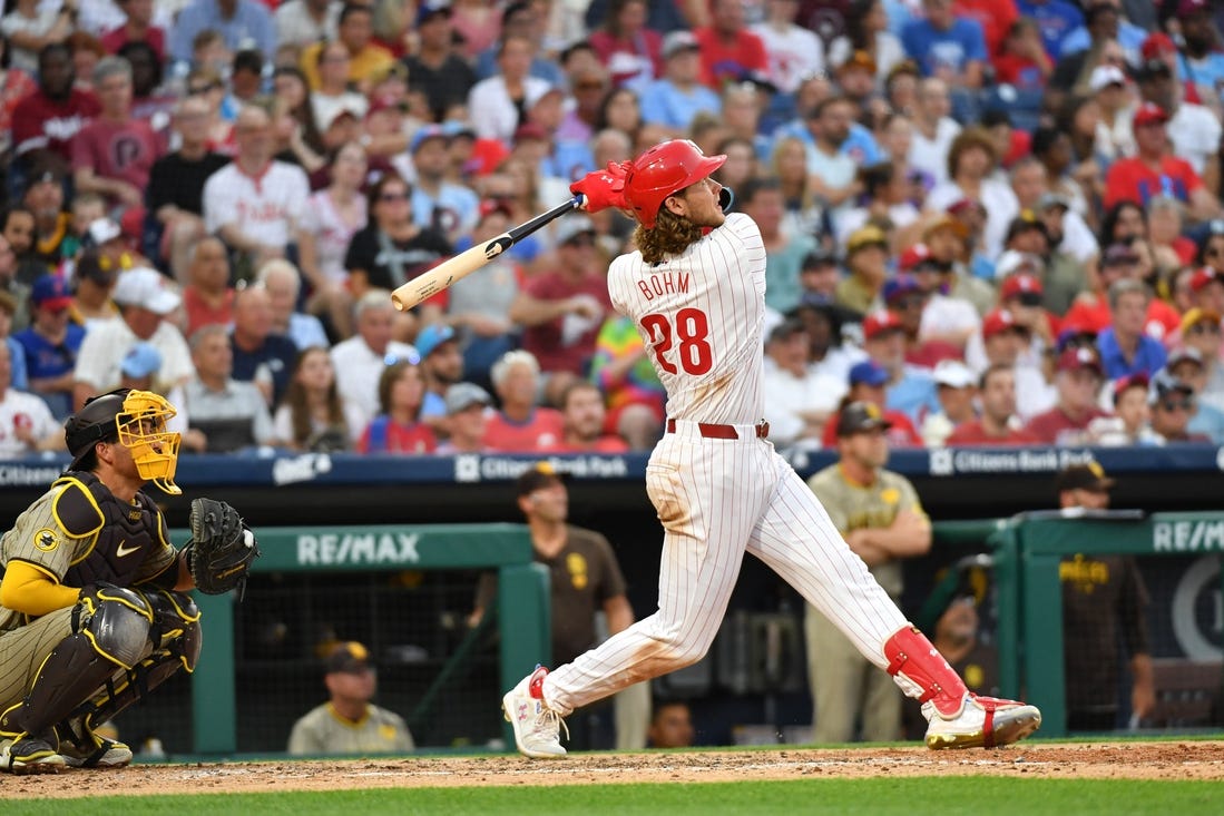 Bohm’s blast to left in the bottom of the fifth opened up a 6-1 lead before Schwarber crushed his second two-run shot an inning later to make it 8-1.