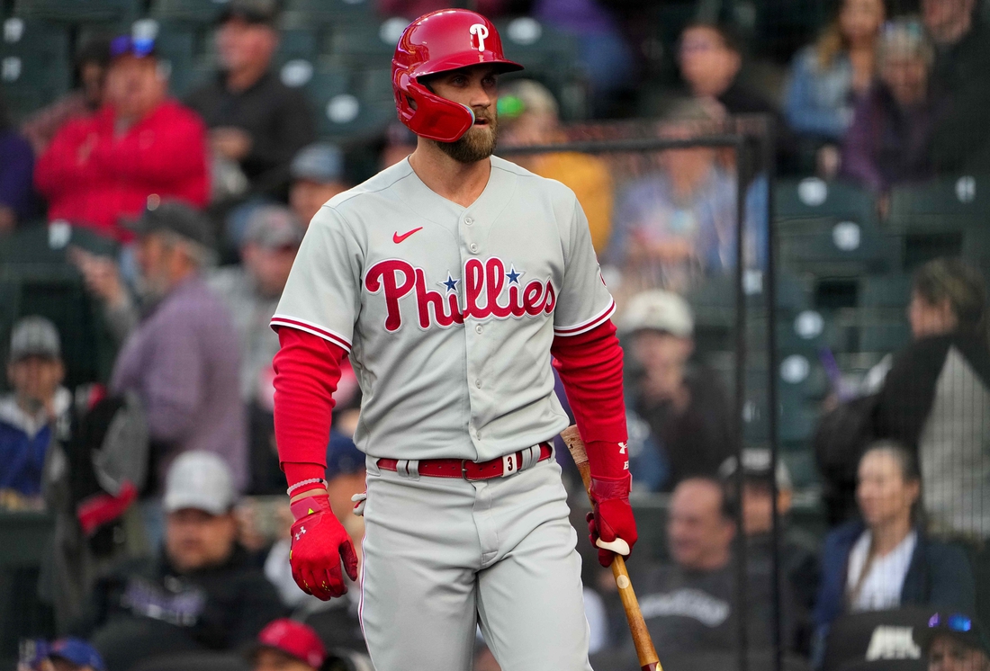 That means despite nursing a sore right elbow, Phillies star Bryce Harper will not miss a chance at the plate. Harper had a single as the designated hitter on Monday in Philadelphia’s 4-1 loss to the Colorado Rockies, a role he will retain over the next two games.