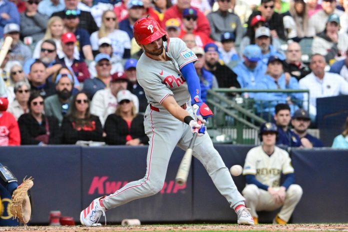 The Phillies added a run in the ninth off Joel Payamps on a leadoff double by Harrison Bader and Stott’s two-out double.