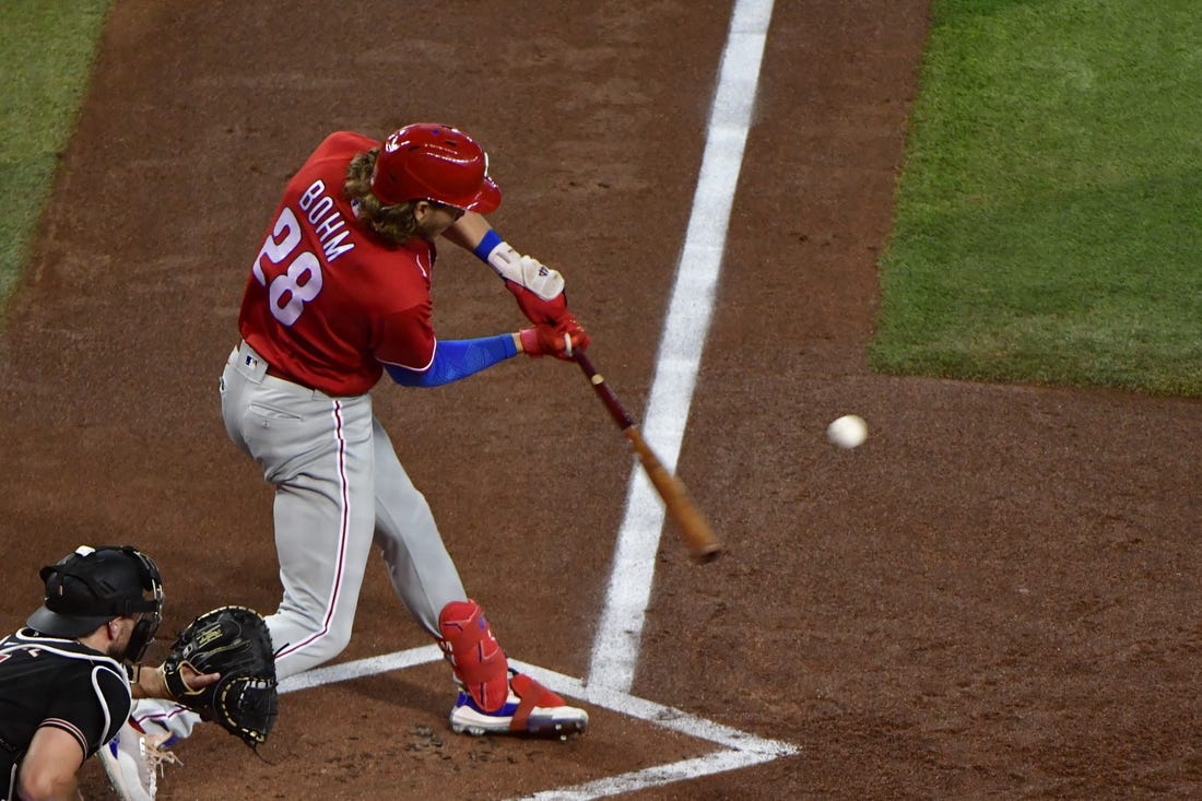 Bryce Harper and Rhys Hoskins also had three hits apiece as the Phillies had 22 overall. Six other players had two hits and Alec Bohm and J.T. Realmuto each scored three times as Philadelphia avoided being swept in the three-game series.