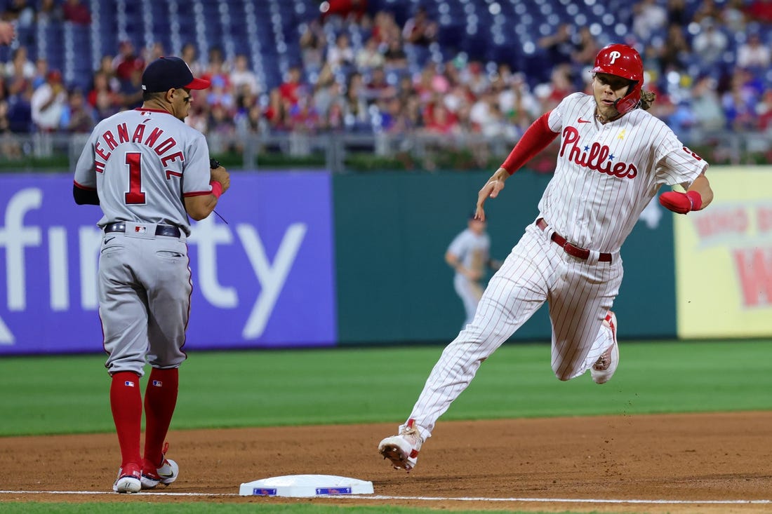 Philadelphia’s Edmundo Sosa stayed red hot with a triple with one out in the bottom of the third inning. It was his sixth hit in as many at-bats with five going for extra bases. Guthrie followed with his first career hit in his second game, an RBI single for a 1-0 lead.