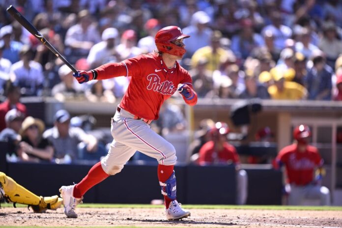 Bryce Harper snapped an 0-for-20 skid with a two-run double on Wednesday in Philadelphia’s 5-1 victory over the Padres. It was Harper’s first hit since he ripped his 300th career home run on Aug. 30.