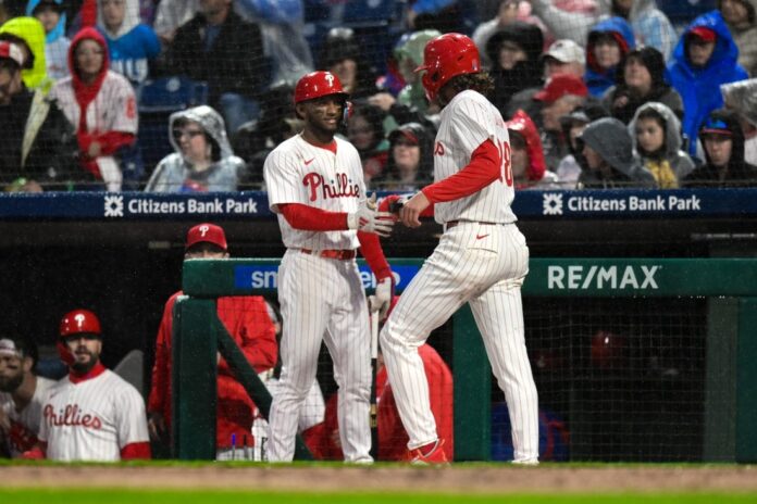 Stott followed with a single to right field, bringing home Bohm. Edmundo Sosa then reached on an infield single, chasing Winn (3-4) from the game after just 39 pitches.