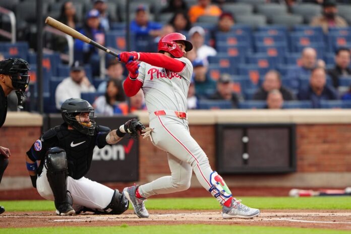 In the 10th, New York reliever Sean Reid-Foley (1-1) uncorked a wild pitch that sent automatic runner Bryce Harper to third. Nick Castellanos walked before Harper tagged up and scored on Stott’s fly to right field.