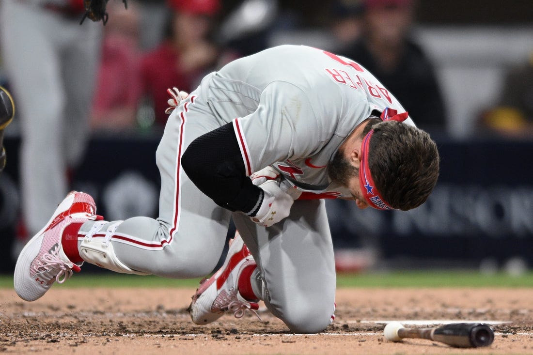 “Things happen for a reason, everybody says that. This reason sucks right now,” Harper said after the game, a 4-2 Phillies’ win. “But at the same time, it is what it is. I gotta be positive for the guys. I’m just really bummed for the organization, the guys and, you know, the city of Philadelphia fans as well. I love running out there playing every day.”