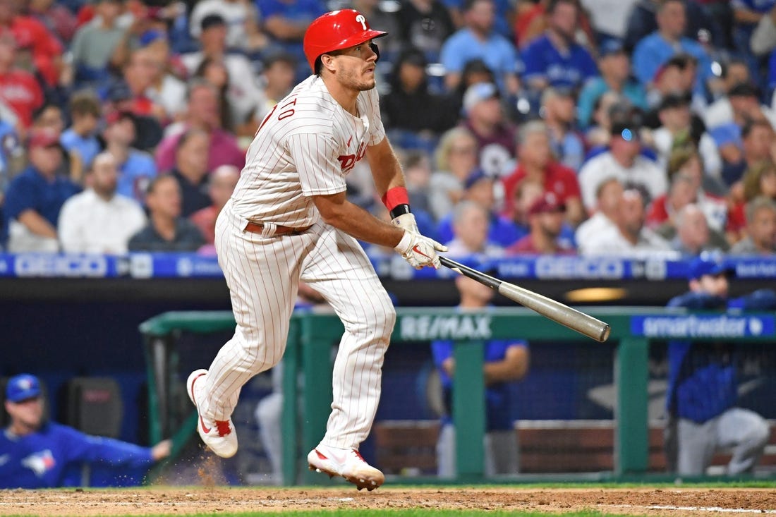 J.T. Realmuto was a bright spot for Philadelphia on Tuesday with five hits, including a home run, and two RBIs. It was the third career five-hit game of Realmuto’s career. Kyle Schwarber hit a three-run homer to reach 40 home runs in a season for the first time, and Dalton Guthrie crushed his first career home run.
