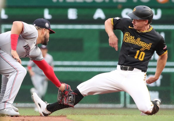 Ke’Bryan Hayes and Enmanuel Valdez each had two hits and three RBIs as the host Pittsburgh Pirates beat the Washington Nationals 10-3 on Monday night.