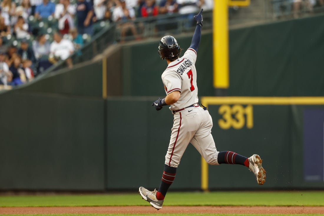 Atlanta’s Ronald Acuna Jr. singled to center field on the game’s first pitch, stole second and scored on Swanson’s blast to center.