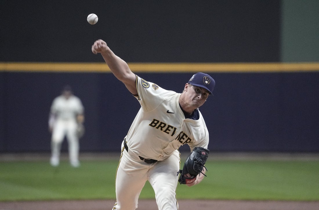 Hoskins opened the second inning with his first home run of the season, sending an 0-1 pitch 440 feet to left-center. Sal Frelick followed with a triple into the right-field corner and came home on Garrett Mitchell’s sacrifice fly to make it 2-0.
