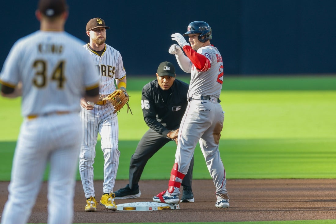 San Diego went ahead in the fifth with two runs when Boston starter Lucas Giolito lost the strike zone, issuing four straight two-out walks after a leadoff single by Fernando Tatis Jr. Free passes to O’Hearn and Laureano drove in the tying and go-ahead runs.