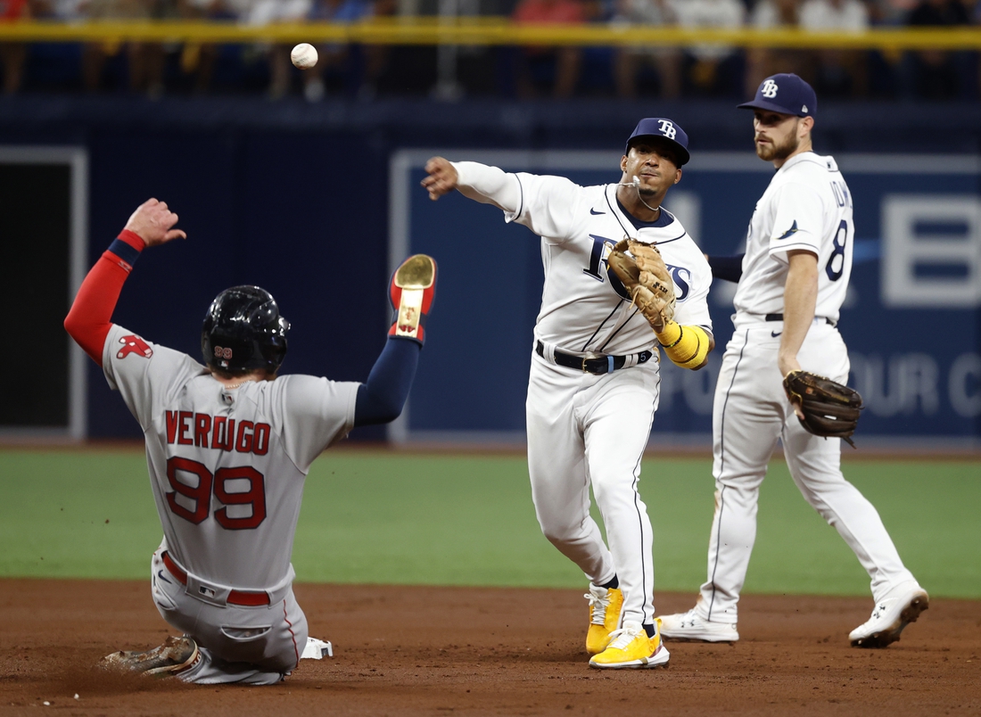 With two outs in the seventh, Arozarena walked and advanced to third on another Franco double. Arozarena took off as Red Sox left-handed reliever Josh Taylor was slow to come set and slid head-first to beat the frantic throw to the plate.