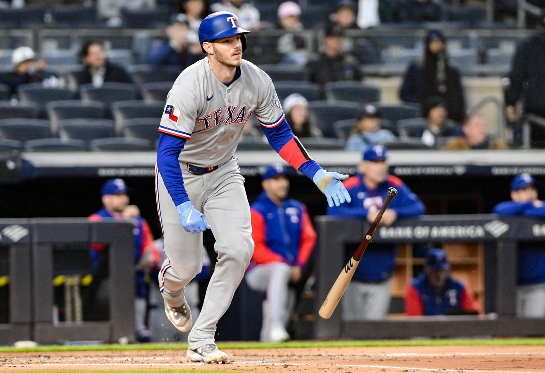 Heim singled in the top of the second inning and is hitting .268 with six home runs and 17 RBIs this season. He is a career .231 hitter with 63 homers and 256 RBIs in 522 regular-season games with the Athletics (2020) and Rangers (2021-present). He was selected to the All-Star Game in 2023.