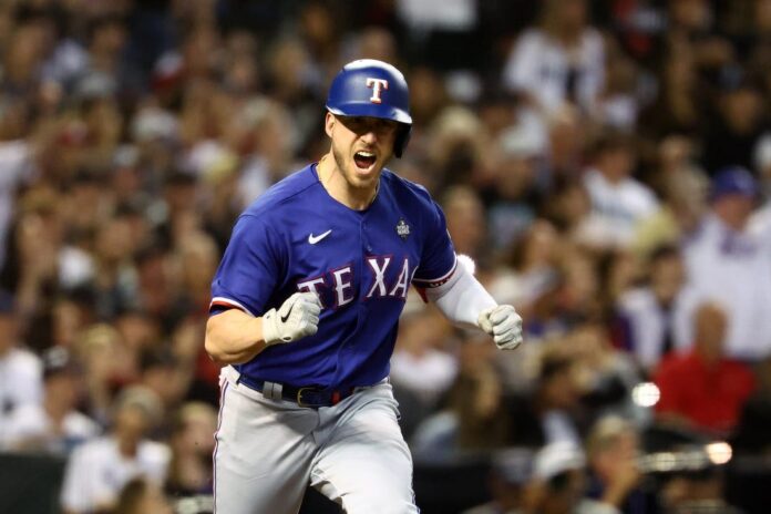 The Rangers sealed their historic win in the ninth when Josh Jung, Nathaniel Lowe and Jonah Heim hit three straight singles. Heim’s hit rolled under Arizona center fielder Alek Thomas’ glove for a critical two-base error that allowed Jung and Lowe to score.