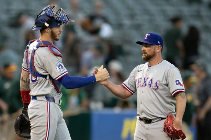 Evan Carter and Nathaniel Lowe produced insurance runs in the ninth with RBI singles, allowing the Rangers to survive a four-run uprising by the A’s in the last of the inning that had the potential tying and winning runs aboard when Kirby Yates got Tyler Nevin to fly out.