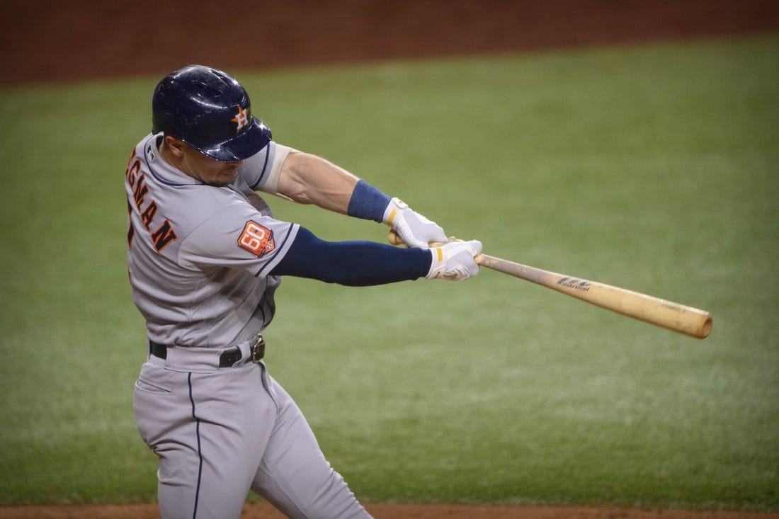 The Astros took the lead in the top of the first when Yordan Alvarez’s two-out single scored Jose Altuve, who led off the game with a double.