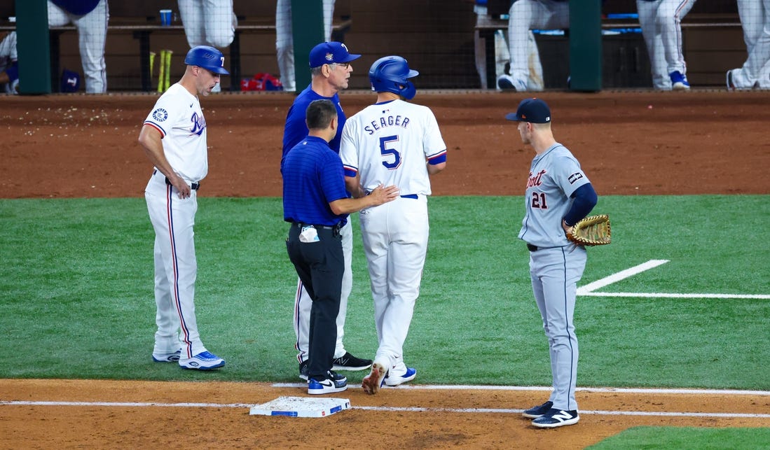 Seager was injured while running the bases during Wednesday’s victory over the Detroit Tigers. He jogged prior to Friday’s game and Bochy said the two-time World Series MVP is “not quite ready.”