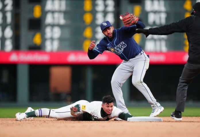 Tampa Bay starter Tyler Alexander loaded the bases with one out in the fifth on two singles and a walk and was replaced by Chris Devenski, who got Elehuris Montero to ground into an inning-ending double play.