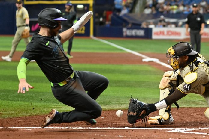 In the fourth, Caballero lined a single to left to score Brandon Lowe and Christopher Morel. Rortvedt then singled to right to score Josh Lowe, making it 8-2.