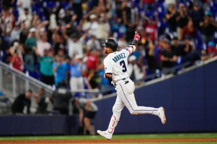 Miami got the bulk of its offense from three consecutive eighth-inning at-bats, when Jorge Soler, Luis Arraez and Josh Bell hit solo homers. It was just the second time in Marlins history that they went deep in three straight at-bats. They also managed such a trifecta in 1998.