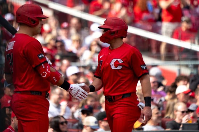 Spencer Steer belted a home run and Nathaniel Lowe hit a three-run double as the Cincinnati Reds defeated the visiting Los Angeles Angels 7-3 on Saturday afternoon, knotting up the three-game series heading into Sunday’s decider.