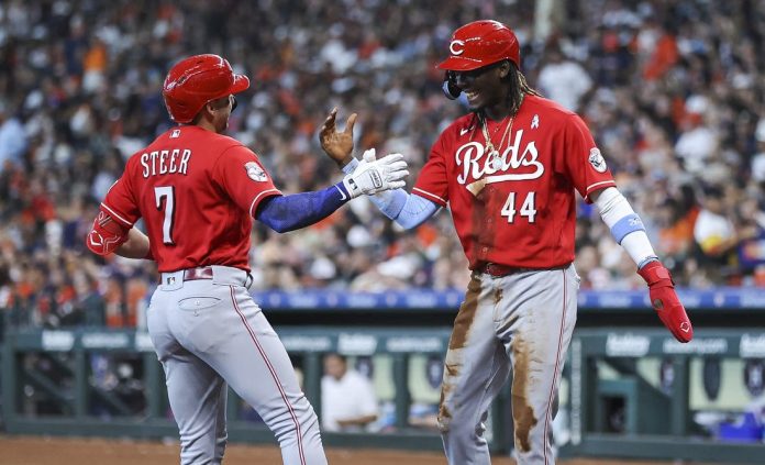 De La Cruz laced a sharp grounder to Astros first baseman Jose Abreu, who made a sliding backhanded stop of the ball before springing to his feet and darting for the bag. However, De La Cruz beat Abreu to first with a dive. One batter later, Fraley delivered an RBI single that scored Matt McLain, sliced the deficit to 5-3 and advanced De La Cruz to third base.