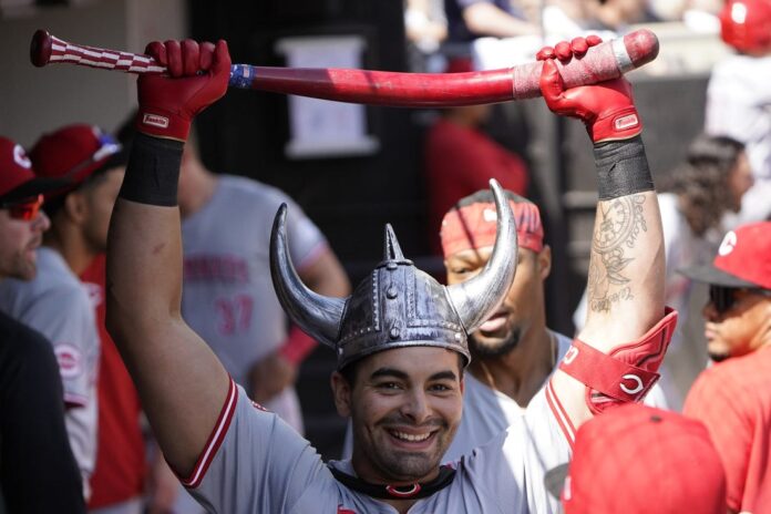 Martini, who had three hits, belted his first career homer against a lefty in the fifth as the Reds took a commanding 6-2 lead.