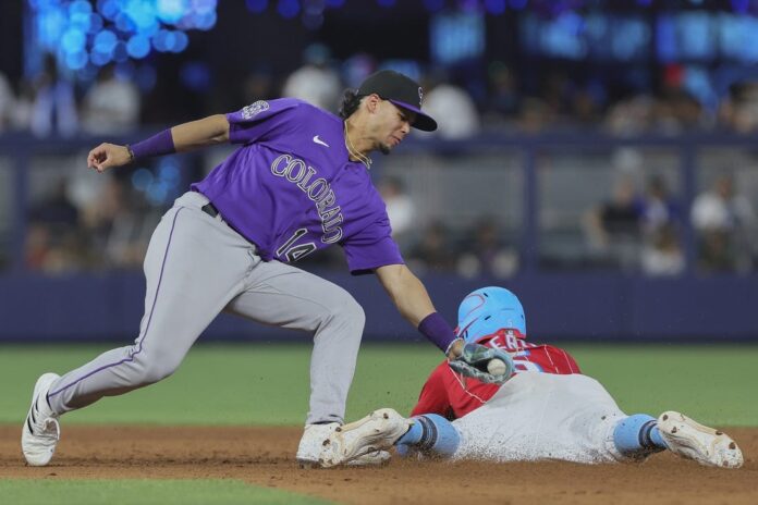 Miami has lost eight consecutive games, including a 4-3 defeat on Saturday in which the team squandered a three-run lead in the seventh inning on rookie Nolan Jones’ homer. Colorado scored the go-ahead run in the ninth inning on Randal Grichuk’s RBI single.