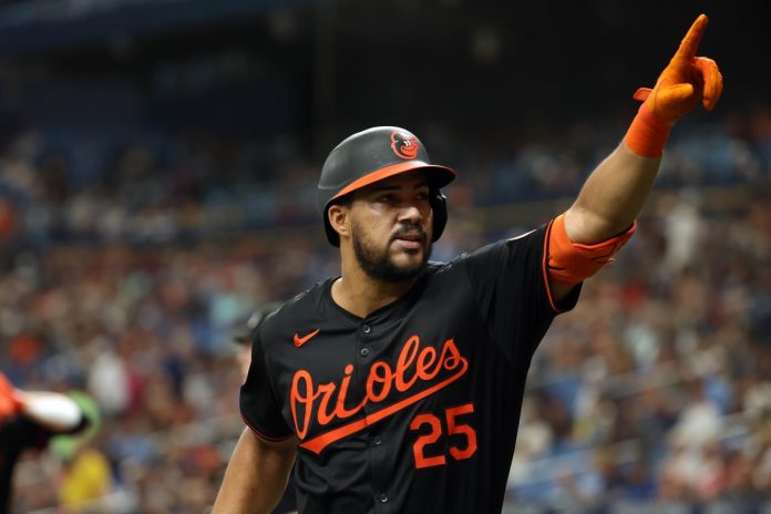 He slashed .246/.307/.469 with 155 doubles, 155 homers and 435 RBIs in eight seasons with the Orioles (2017-24).