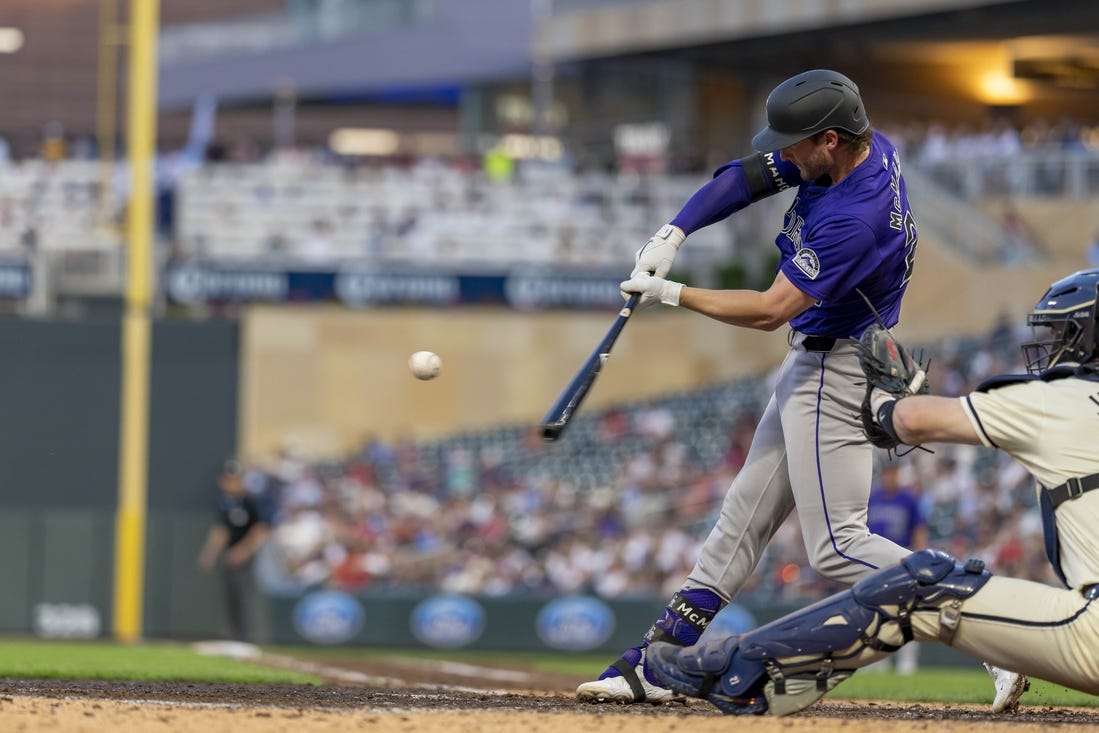 McMahon responded with a solo shot in the top of the eighth to increase Colorado’s lead to 5-2. He fouled off the first pitch he saw and crushed the next one 441 feet to right for his 11th homer, which matched Tovar for the team lead.