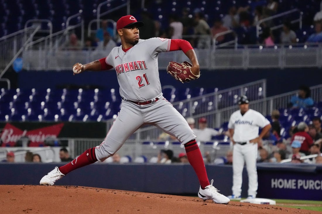 Rookie Hunter Greene struck out eight batters and allowed just one hit in six scoreless innings, leading the visiting Cincinnati Reds to a 3-1 win over the struggling Miami Marlins on Monday night.
